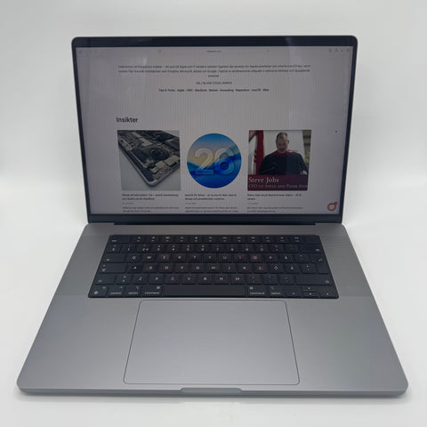Begagnad MacBook Pro 16-tum M1 Pro – rymdgrå, 32 GB RAM, 1 TB SSD, ny skärm